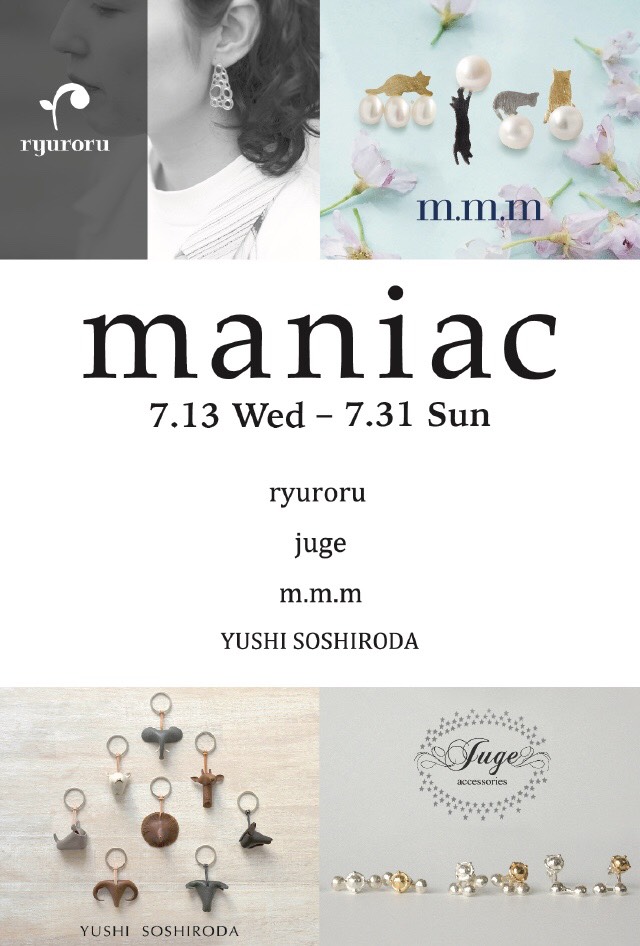 maniacはマニアックなモチーフが多い、4ブランドが集結したスペシャルアクセサリーショップです。深海魚、宇宙、植物、きのこ、動物…etcの少し変わった世界観の作品達が面白い空間を演出します。
