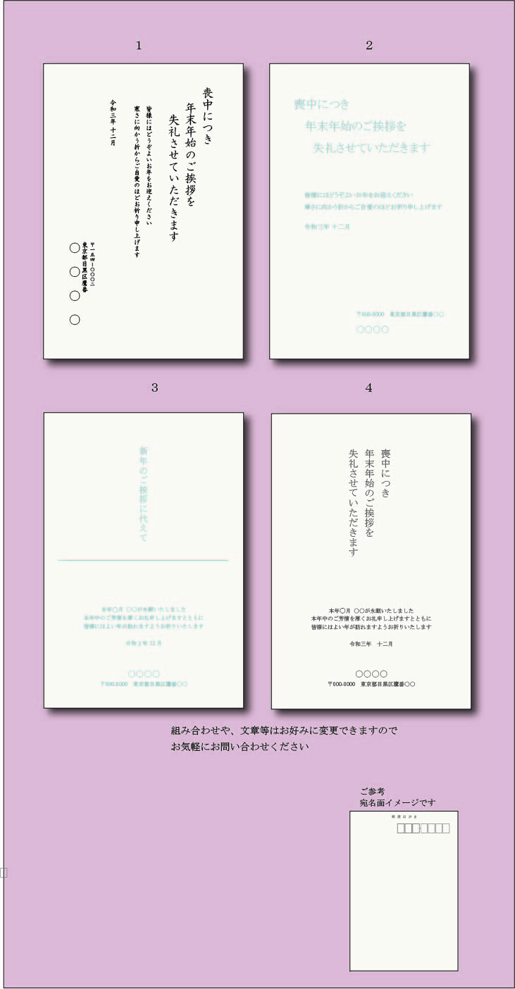 宛名面 ご希望の方は下記内容はサービスで印刷いたします、刷色はグレー又はシルバーブルーの2色になります
